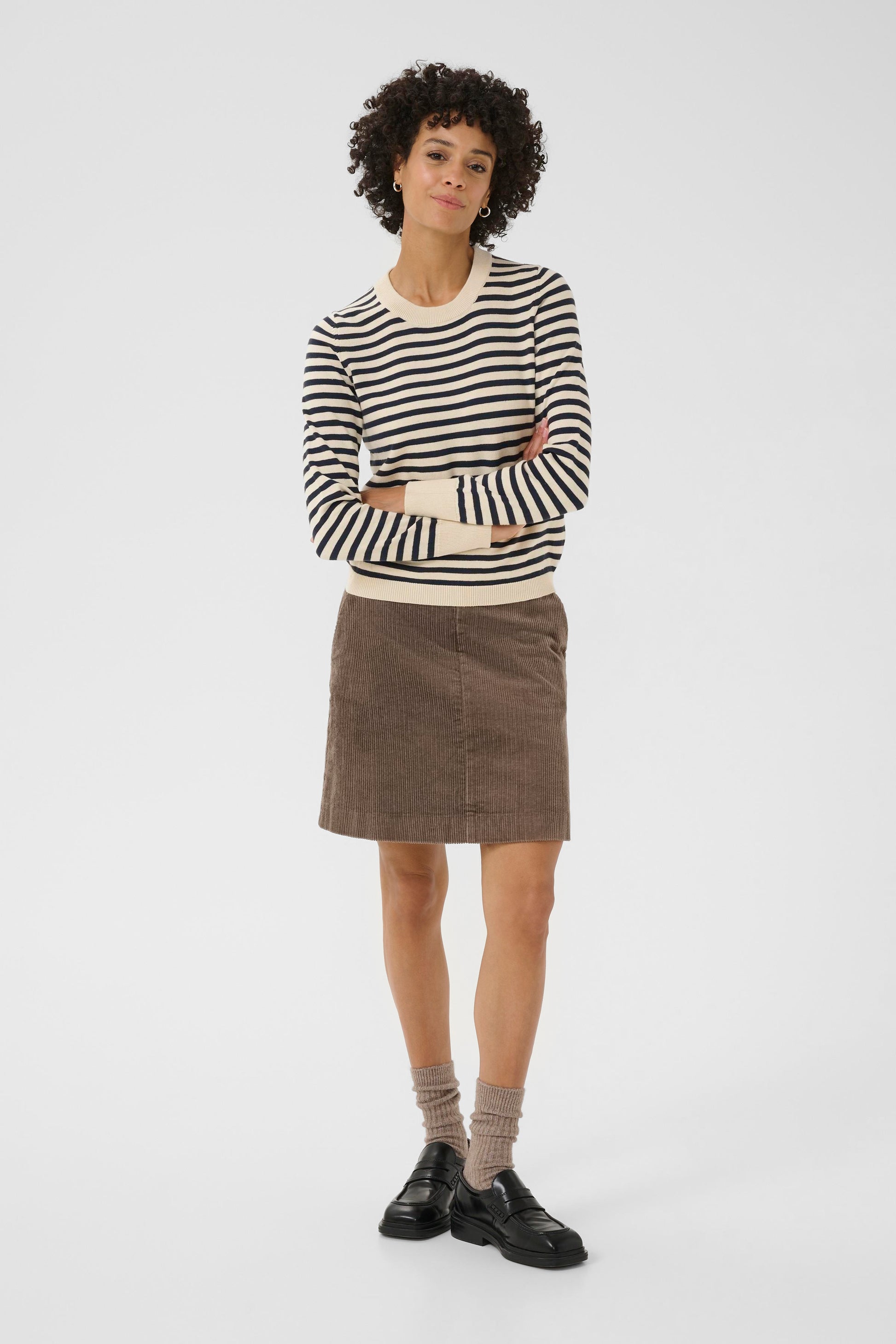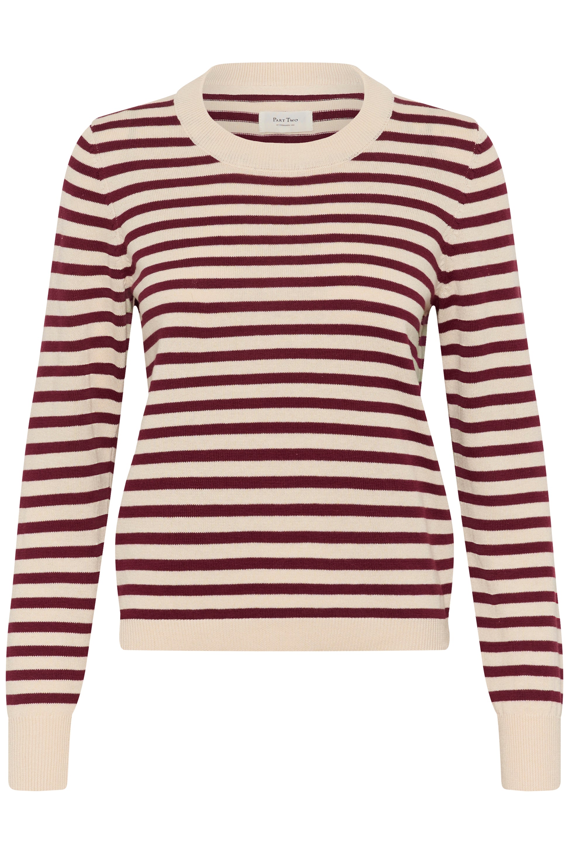 This soft knit with wide cream stripes has a classic look and a comfortable fit in either navy or burgundy. Ribbed edges at the neckline, cuffs and hem create a relaxed yet stylish feel – perfect for everyday wear with jeans or black trousers.