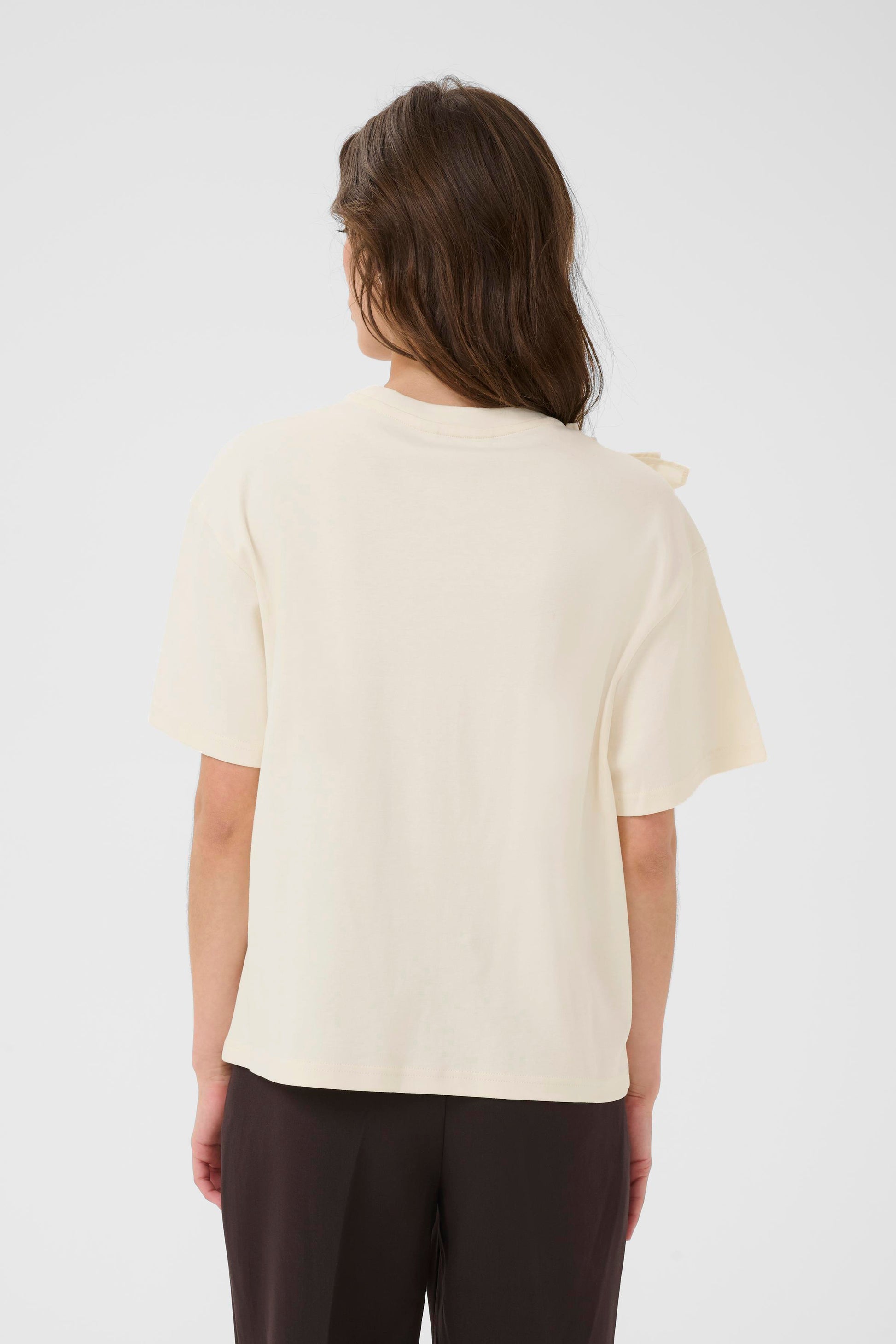 Elevate your everyday style with the Part Two Sophy Ruffle T-Shirt, featuring a refined cotton poplin ruffle that adds a subtle yet striking detail. This sophisticated twist on a classic tee is effortlessly versatile, perfect for dressing up any look with ease and grace.