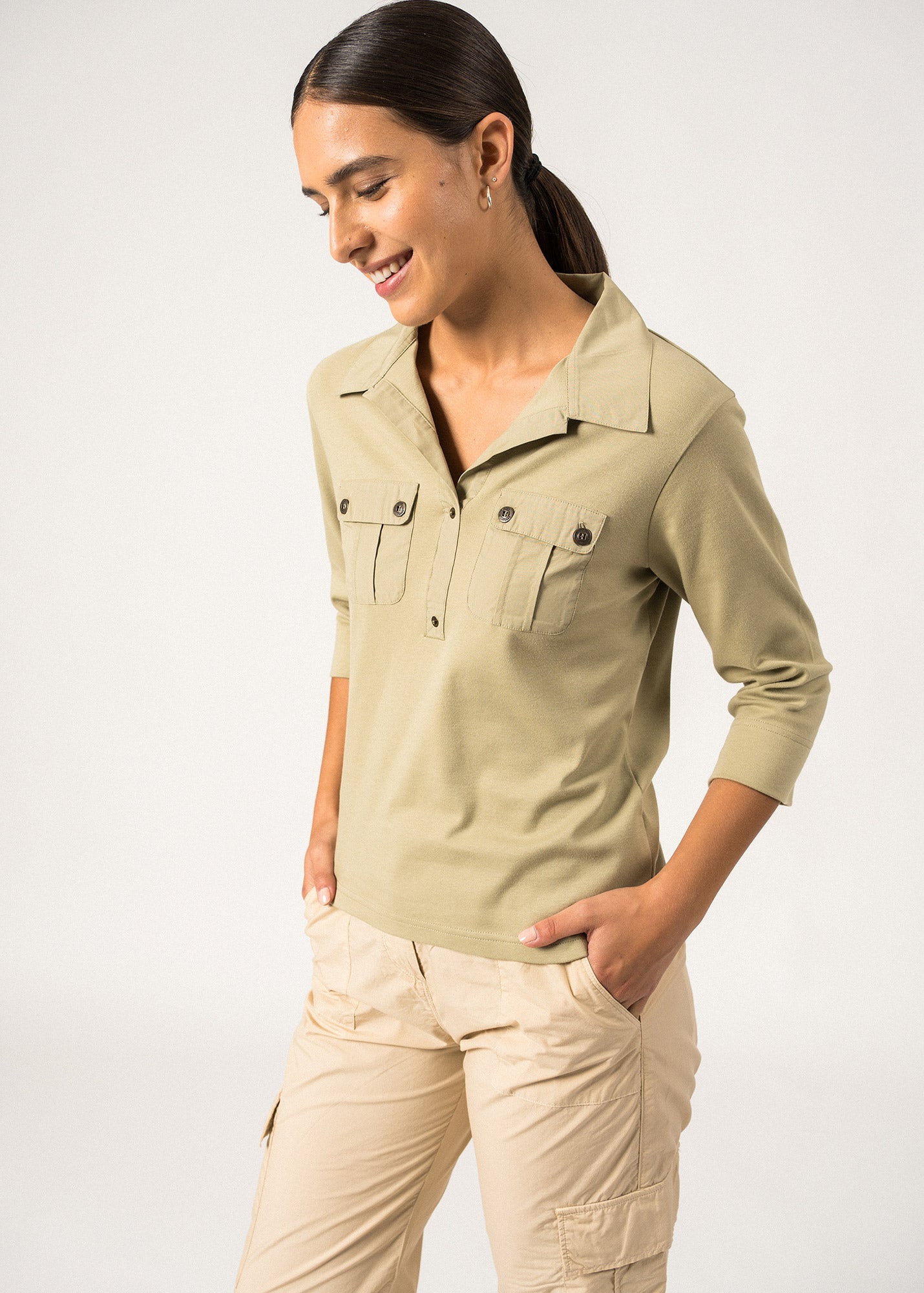 With its canvas panels and aged metal details, Oleron is an elegant, sober polo shirt, easy to match and very comfortable to wear.