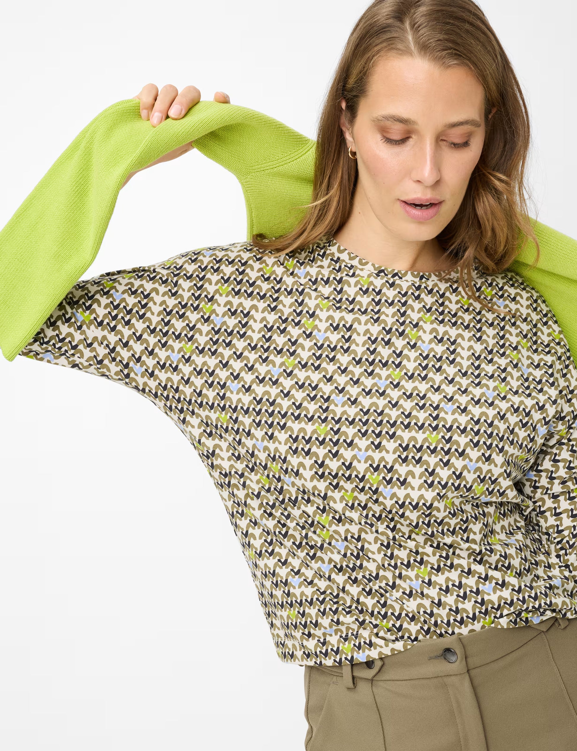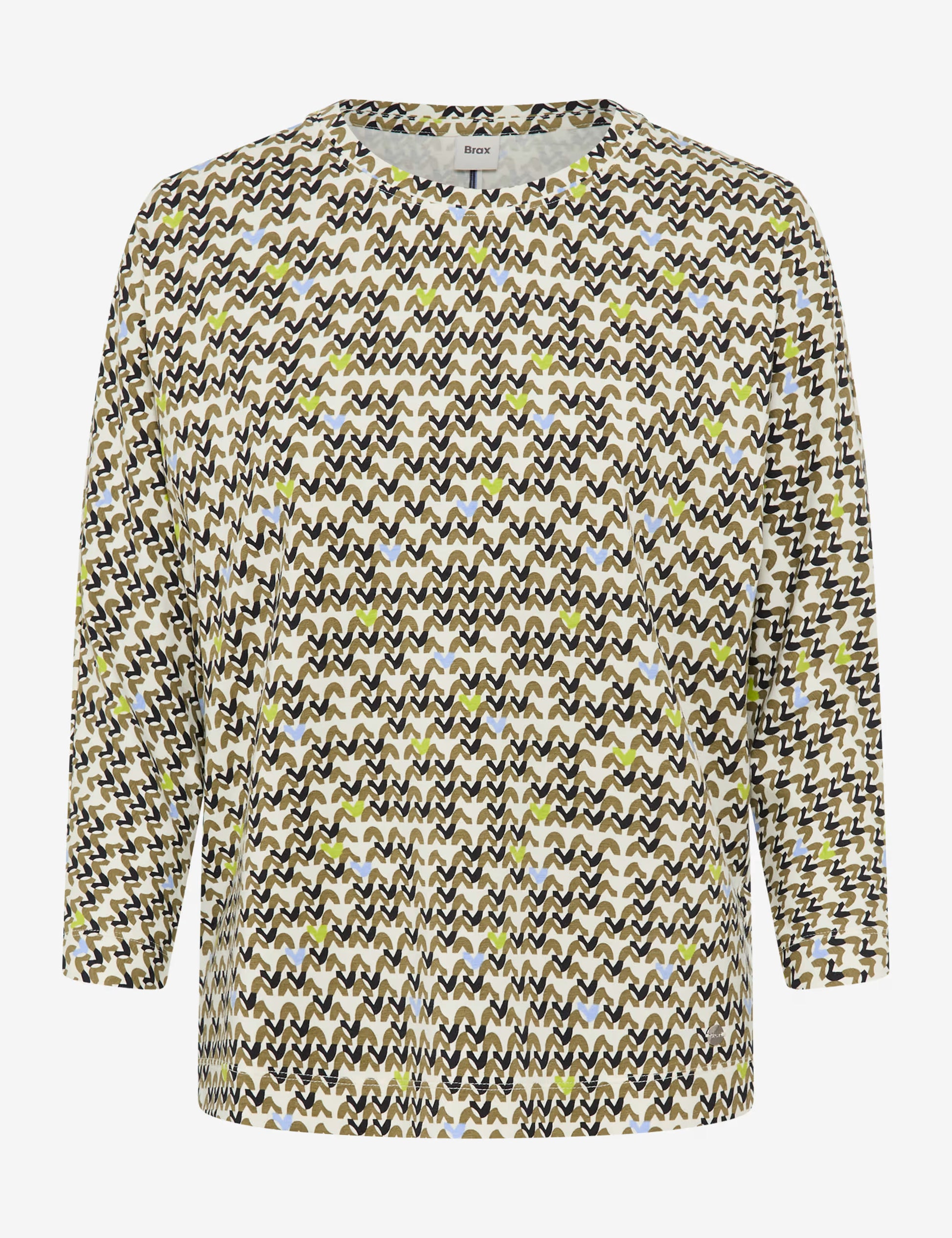 Vibrant, graphic, and full of energy – the CHARLENE-style shirt brings a fresh, dynamic feel to your wardrobe and makes a fashion statement with its striking all-over print. The relaxed, slightly oversized cut with dropped shoulders and three-quarter sleeves creates a modern, flowing silhouette. The classic crew neck completes the timeless design. Harmoniously complementing the bold look, the high-quality cotton blend, enhanced with modal and elastane, offers an incredibly soft and smooth feel against the skin, as well as comfortable flexibility that moves with you. The characteristic jersey fabric ensures a refined, durable comfort and impresses with its clean, smooth appearance.