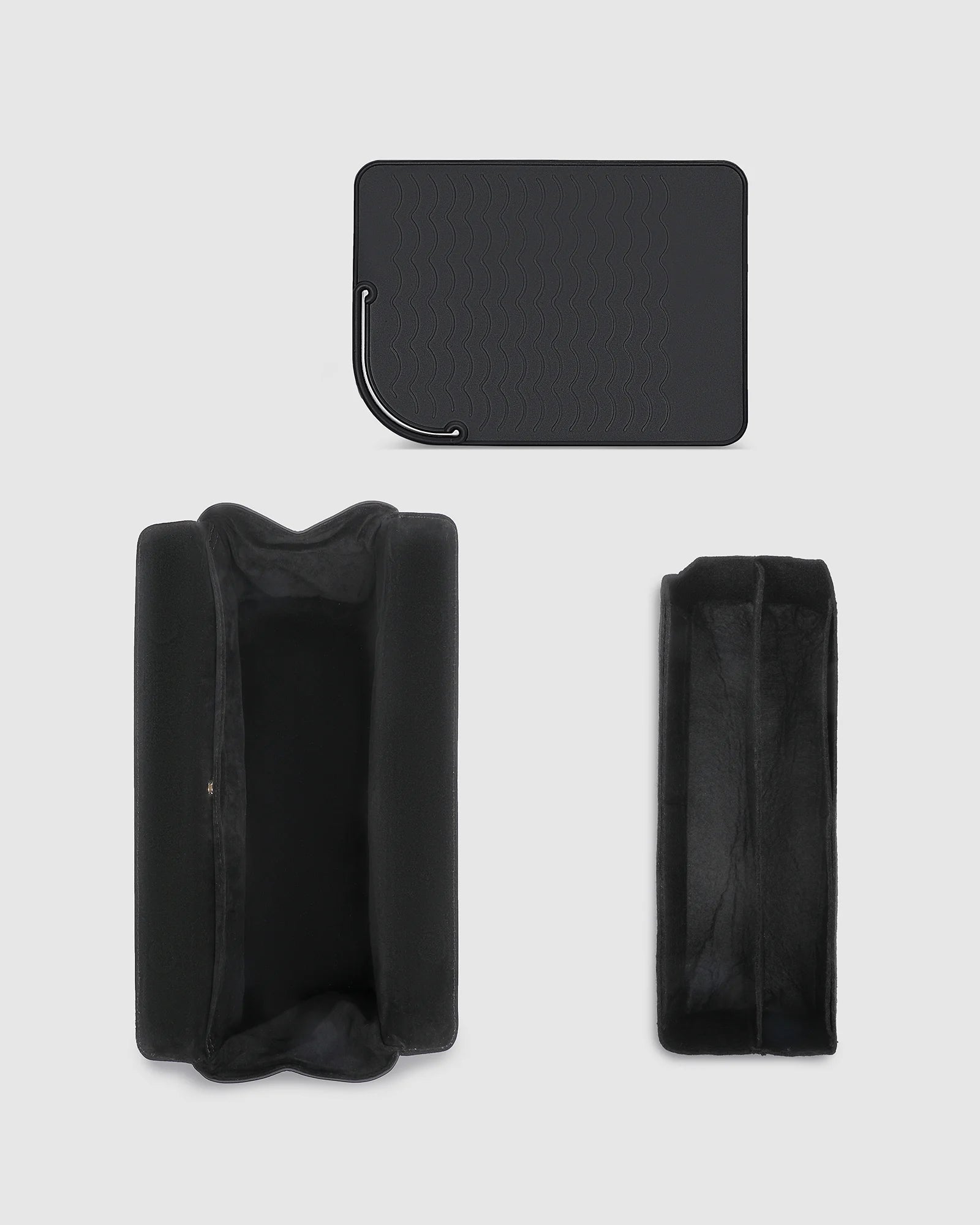 The Margot Hair Tool Travel Case is your elegant companion for styling on the move. Designed with travel and organization in mind, Margot's sleek silhouette is crafted in a rich satin-like chocolate finish, bringing a timeless touch to your beauty routine. Her structured form, spacious interior and soft magnetic closure make packing styling tools, like the Dyson Airwrap, feel effortless. Now complete with a matching heat mat, Margot ensures you can style with ease and protect your surfaces wherever you go. Whether you’re jetting off or freshening up between plans, she blends function with quiet luxury, keeping your essentials neatly stored without compromising on style. Slip her into your carry-on or display her on your vanity—she’s as beautiful as she is practical.