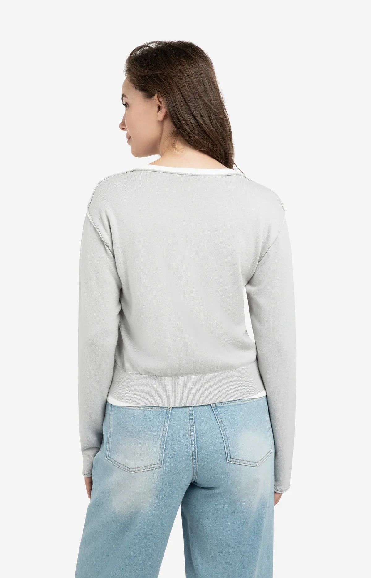 This soft sweater features a V-neckline, long sleeves and built-in contrast details at the neckline and hem, creating an elegant layered look. Crafted from a fine knit with a regular fit. A refined and easy-to-style piece for everyday wear. The model is 178 cm and wears size S.