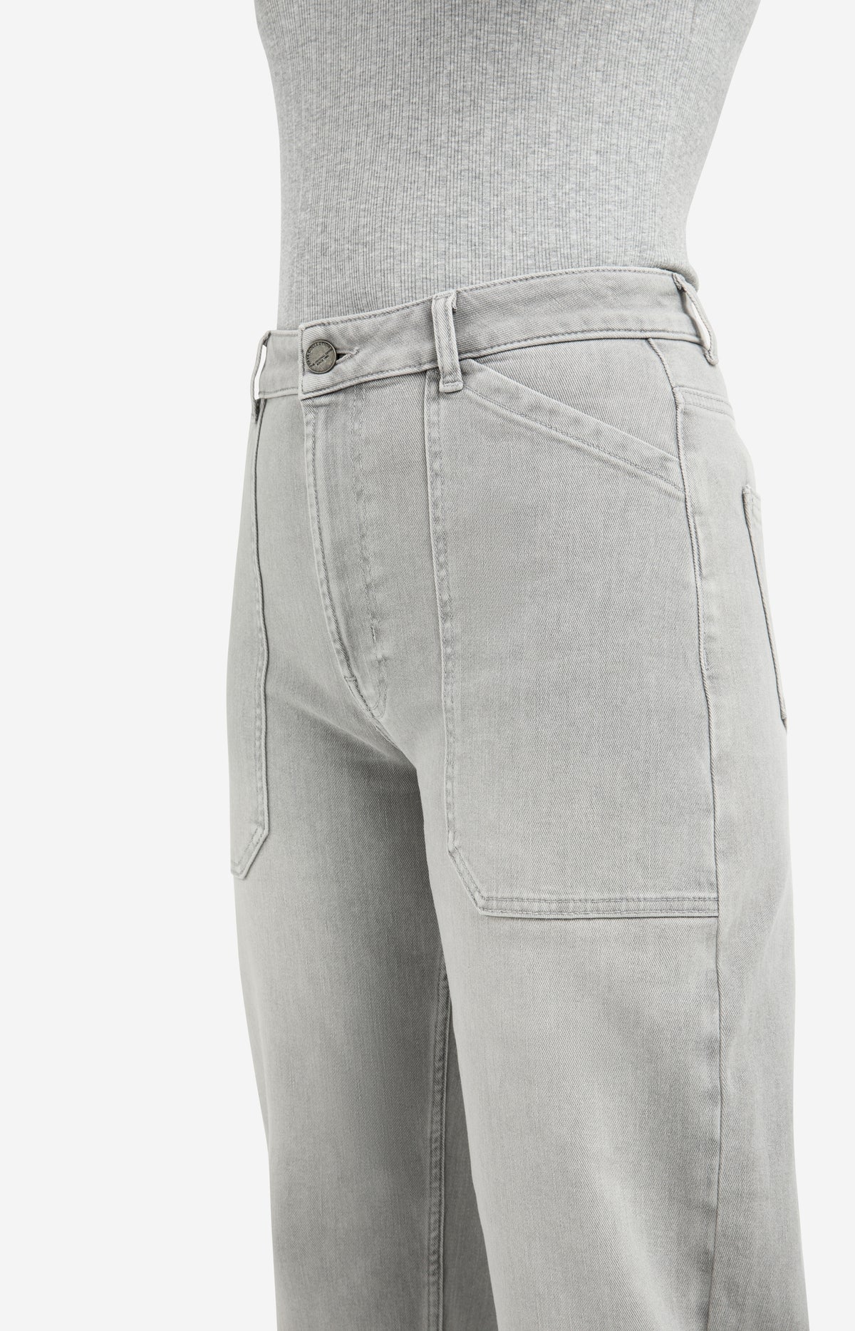 These cargo jeans are crafted from a sturdy denim with a soft wash finish. Designed with a high waist, low crotch, and a loose fit with wide straight legs. Featuring front patch pockets for a contemporary touch, along with slanted side pockets, back pockets, and belt loops. A stylish and comfortable piece that adds a casual edge to any look. The model is 178 cm and wears size 36.